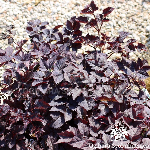 黒さの際立つ美しい葉に、紫系の花を咲かせる
