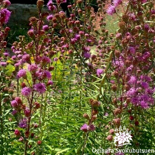 夏秋に咲く遅咲きのリアトリスで、一般種のような穂咲きではなく一輪一輪が独立して大きいので珍しさが目を引く