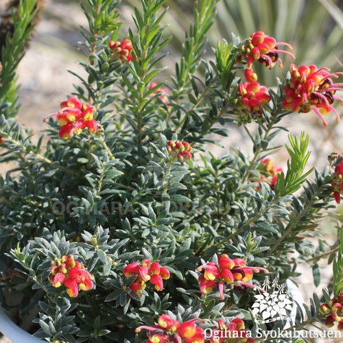 周年常緑の低木で、這うように広がり、乾燥地のカバーに良い小型のグレビレア
