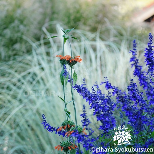 大型のライオンズイヤーで、2mほどの高い位置で開花するので植栽の後方によい