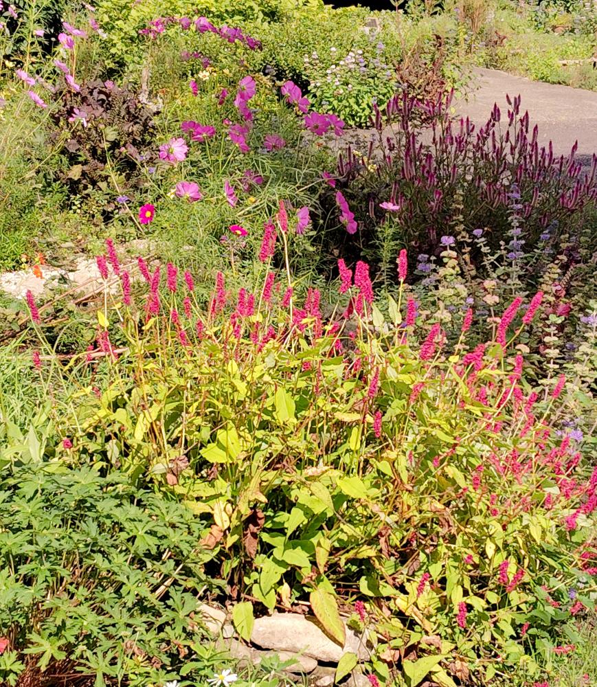 見づらいですがベロニカストラム ファッシネーションは早めに咲くのでもうキレイなシードヘッドに。ペルシカリアゴールデンアローは3つに株分けした1つが映ってます。可愛いくて大好きです。
