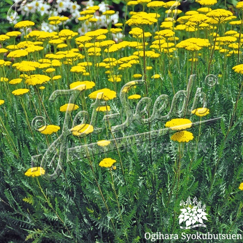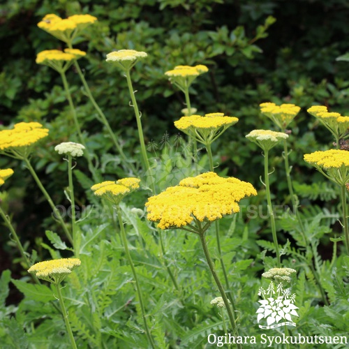 花期には1mを超える草丈になり、お皿のような平面的な黄色の花をたくさん咲かせて見栄えがする