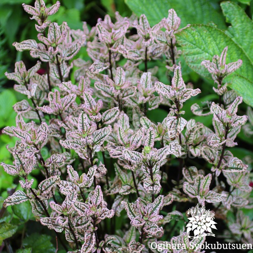 宿根性の姫ヒマワリの品種 葉の模様のように入る斑がとてもユニークで、春の芽吹きには美しいピンクを帯びる